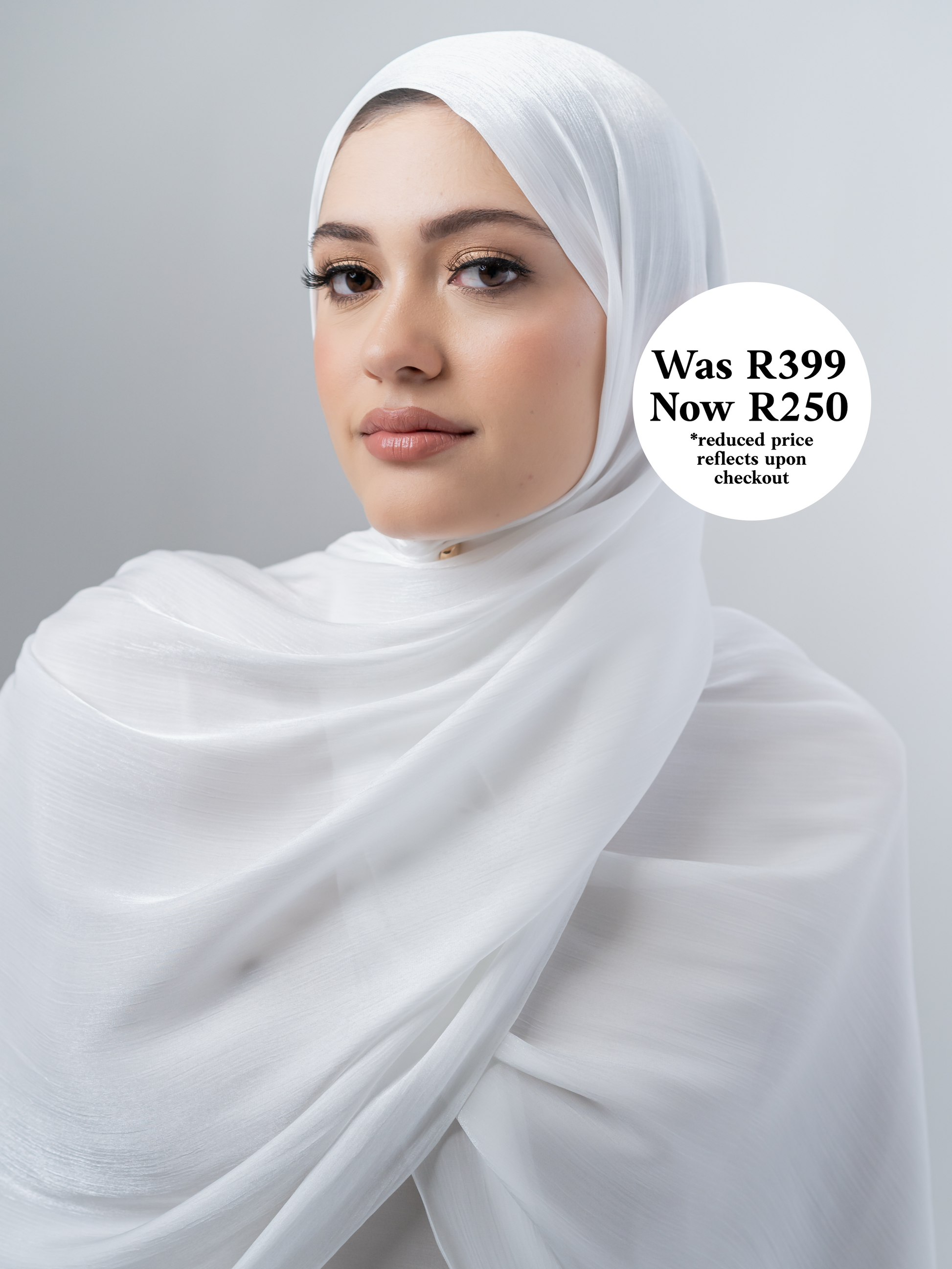 Made with a luxury blend of satin and silk with a shimmering glossy look added to it, this hijab is designed for a glam event.