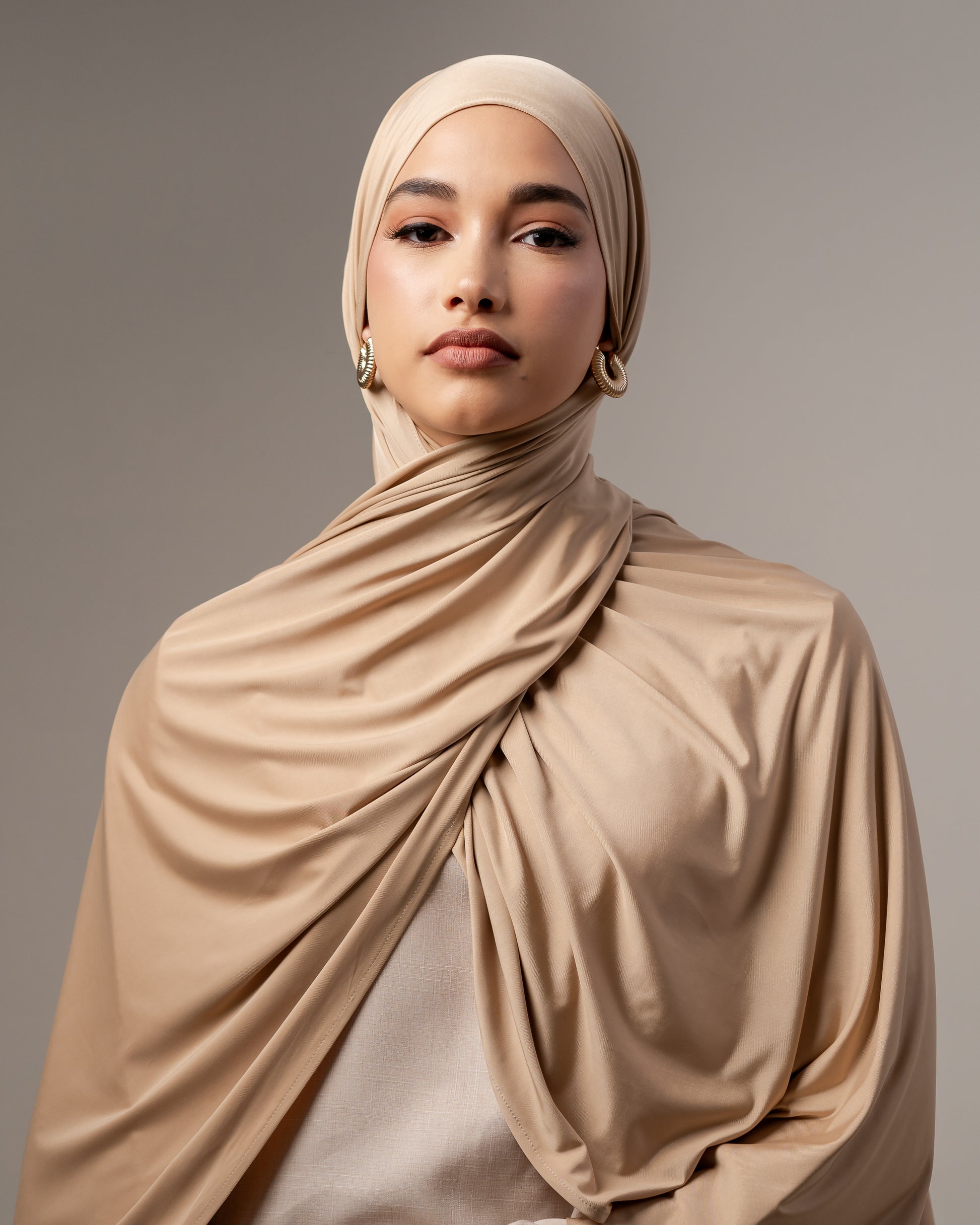 Discover the perfect balance of comfort and elegance with Luxestretch. Crafted from a premium polyester-spandex blend, this hijab offers natural stretch for a snug, secure fit while remaining lightweight, breathable, and soft against the skin.