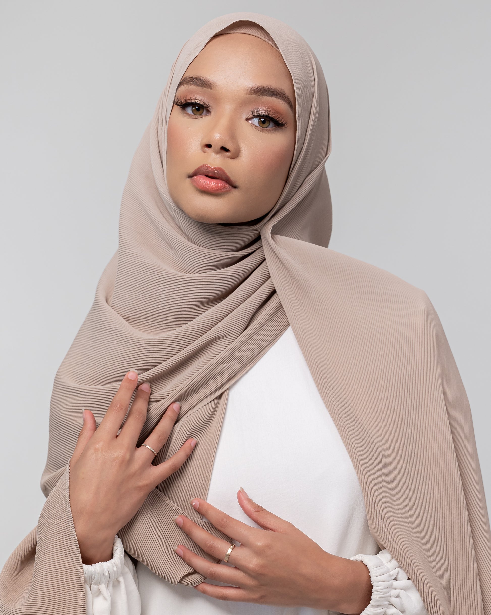 These are made with the Valenci bestselling luxury chiffon hijab fabric. They are high quality, slightly heavier than our usual chiffon due to the intricate and countless amounts of crimps achieved on this hijab. They have an effortless drape in the most decadent shade range to ensure pure opulence.