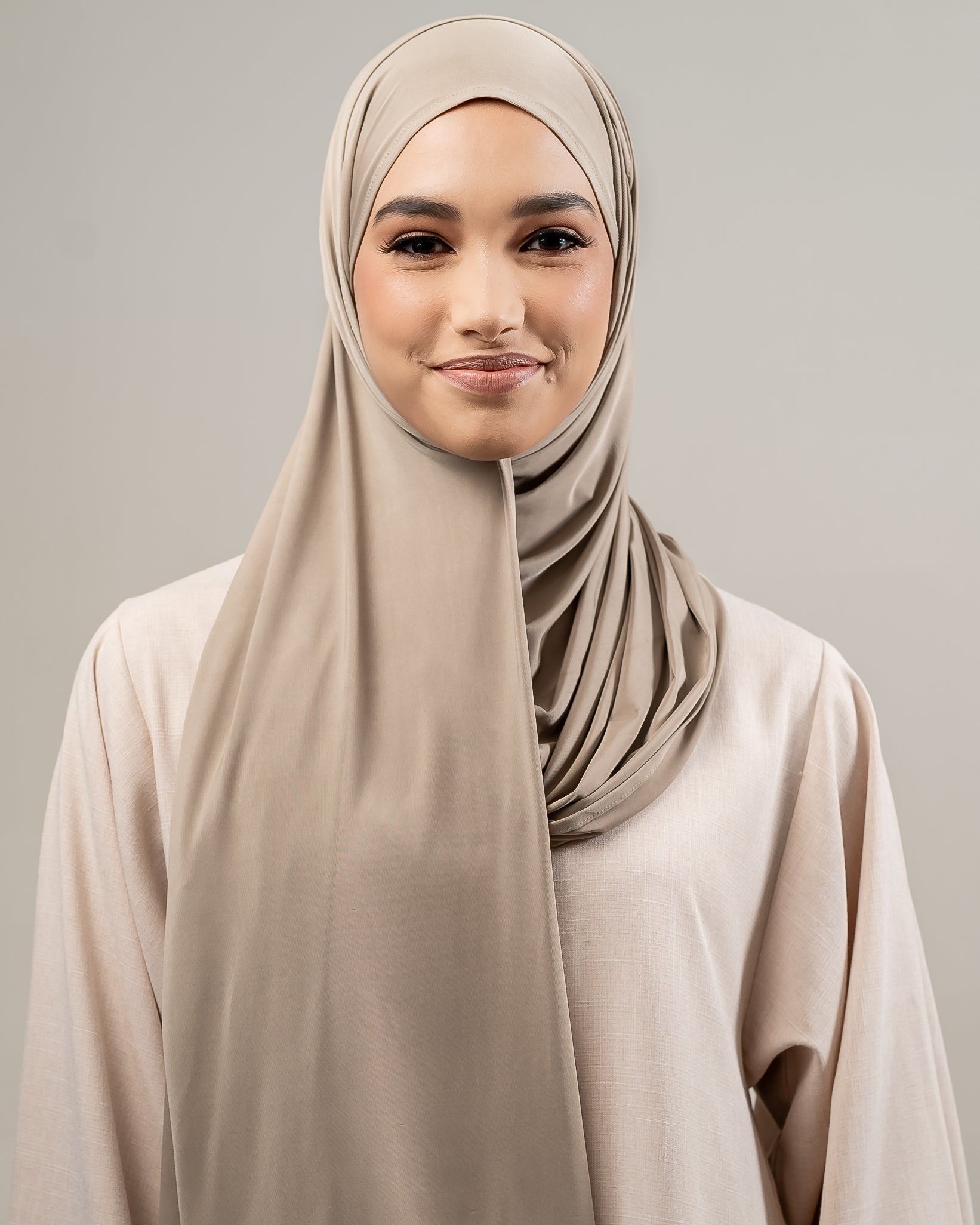 Crafted from a premium polyester-spandex blend, this hijab offers natural stretch for a snug, secure fit while remaining lightweight, breathable, and soft against the skin.
