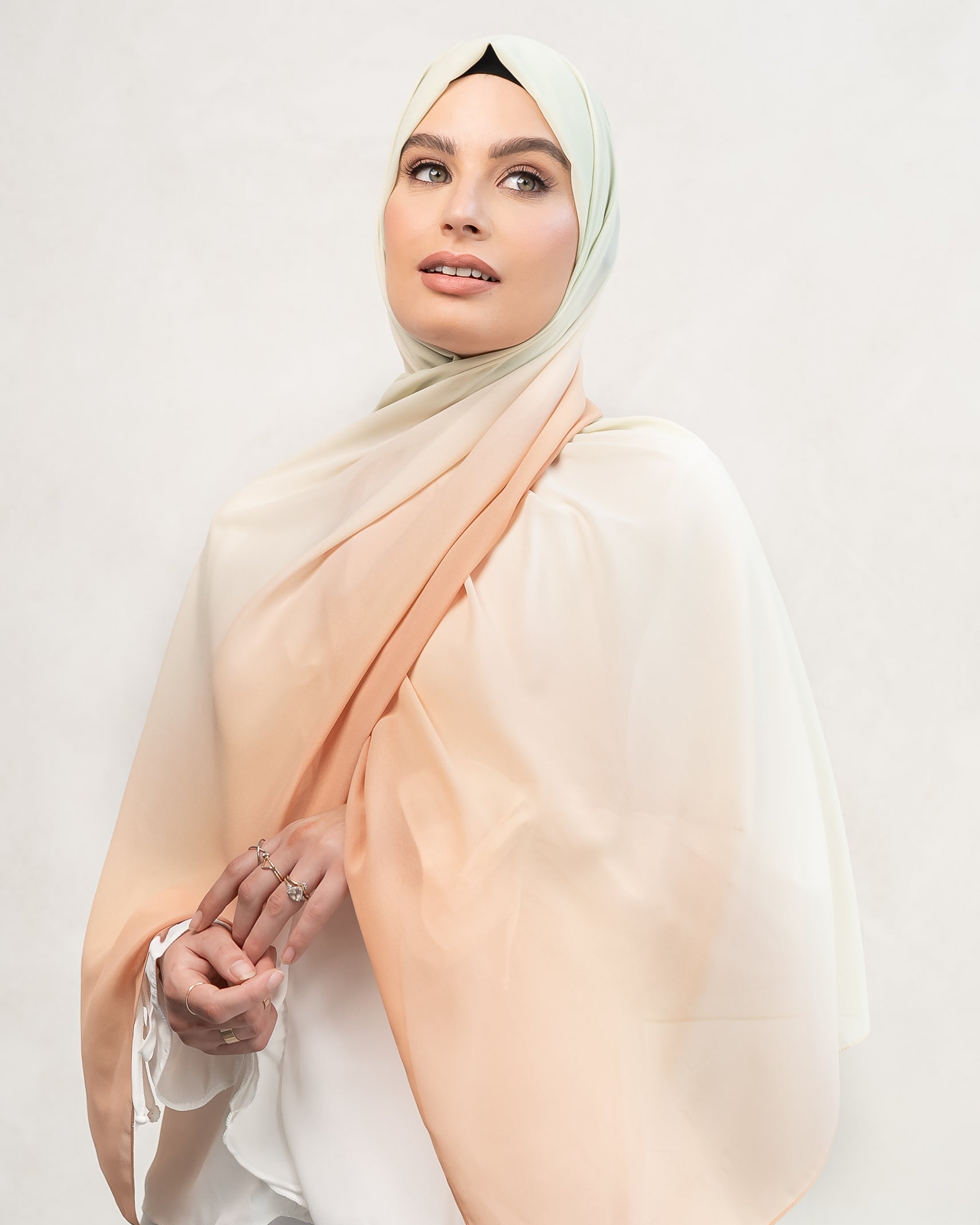 Hijab properties include it a being lightweight, high quality fabric with a slight stretch to ensure the perfect drape.