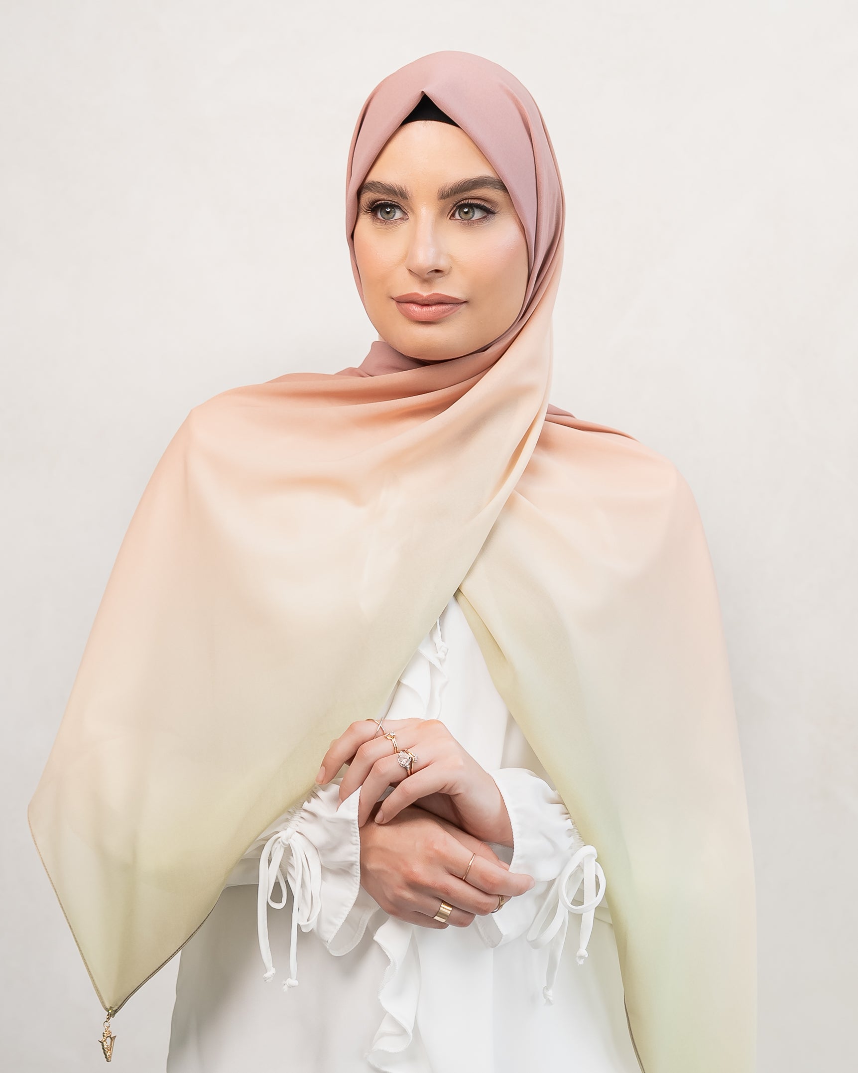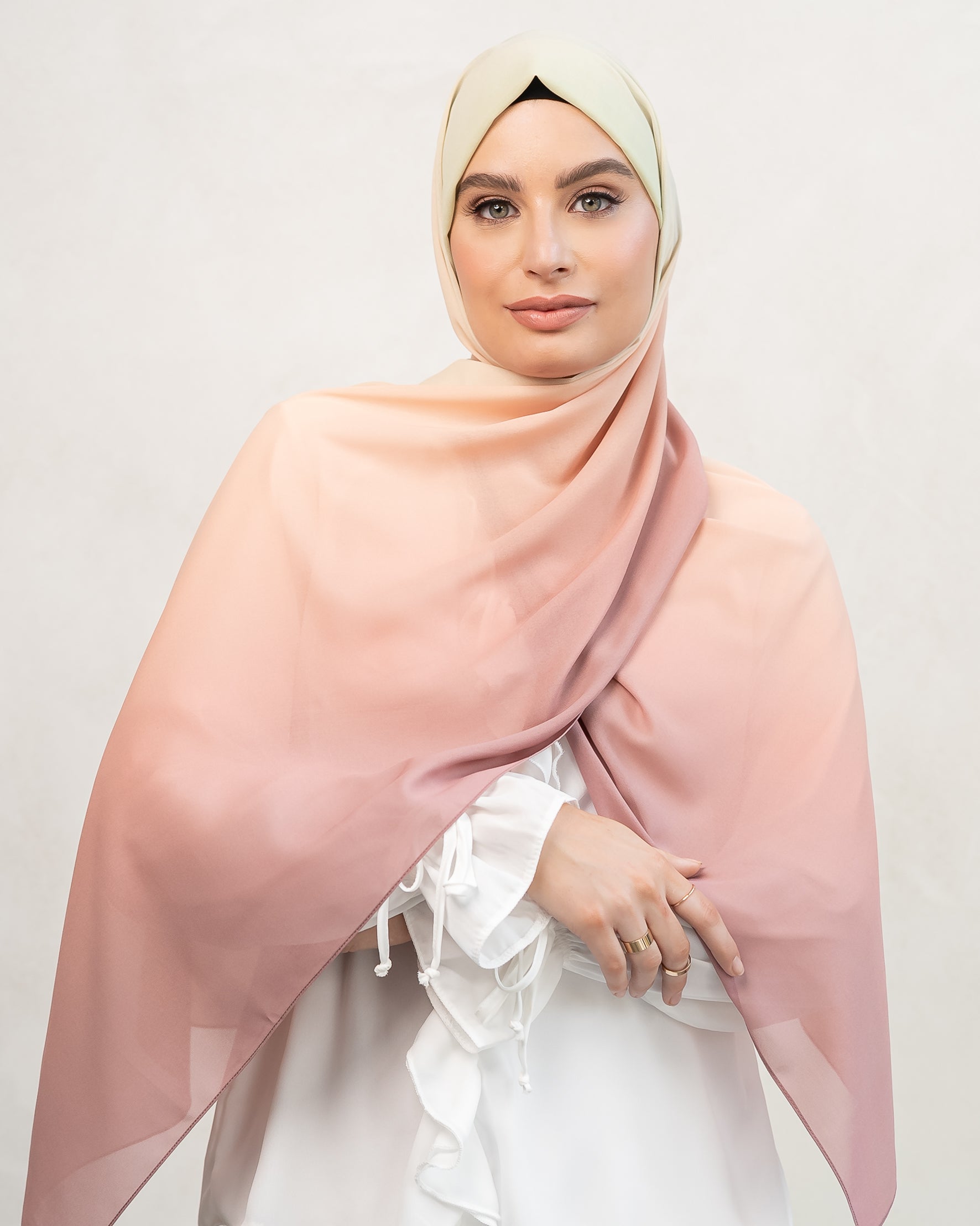 Hijab properties include it a being lightweight, high quality fabric with a slight stretch to ensure the perfect drape.