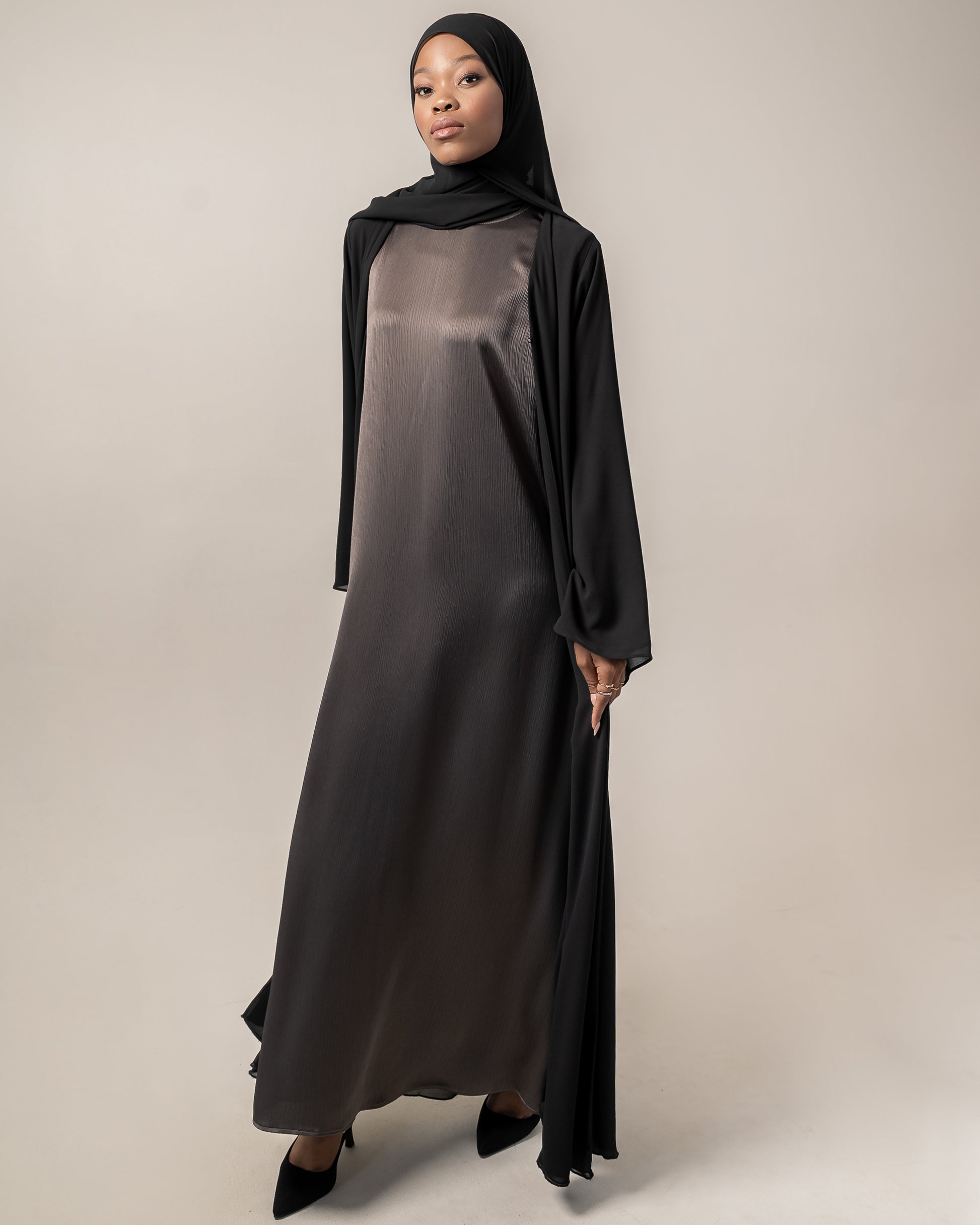 Introducing the Valenci Satisilk Inner. This luxurious inner is made using our popular high quality Satisilk fabric with the most beautiful sheen to it - It is made to be worn as an inner under an abaya for a glam look.