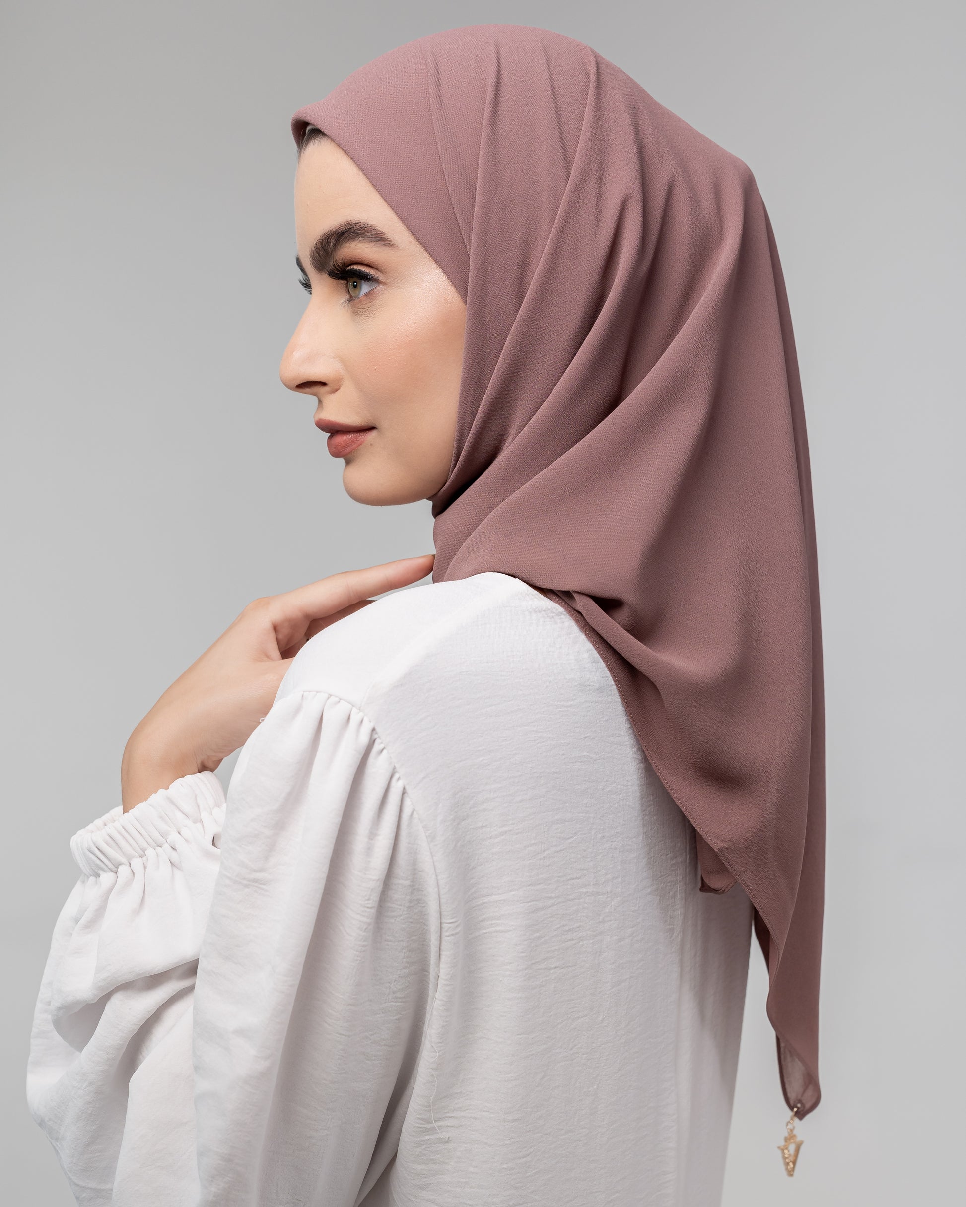 Our Valenci square luxury chiffon hijabs are made with the very finest and softest chiffon fabric. We have designed a high quality, non slip, slight stretch, lightweight feel, chiffon range with an effortless drape in the most decadent shade range to ensure pure opulence.